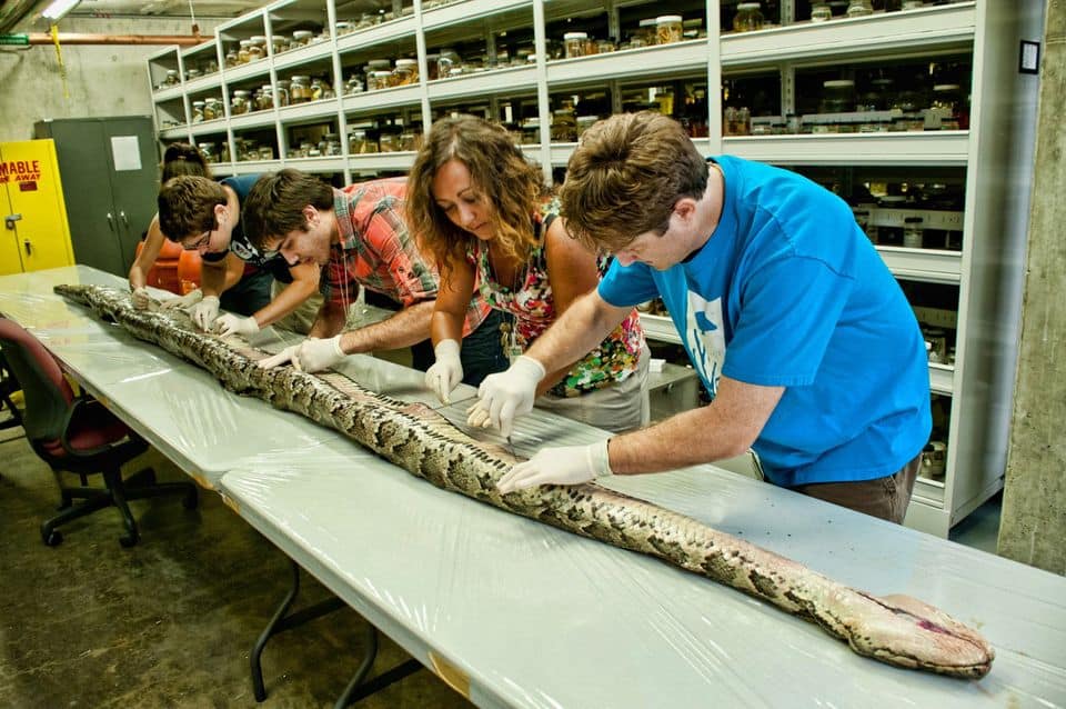 “A 17.5-foot snake could eat anything it wants.” That charming quote comes to us courtesy of Kenneth Krysko, the manager of the Florida Museum of Natural History’s herpetology collection, on account of the new Florida state record holder for longest Burmese Python. The monster was caught in Everglades with 87 eggs in its stomach (Burmese python babies have a high survival rate, in case you were wondering) and taken to the museum to be studied by scientists. “This thing is monstrous, it’s about a foot wide,” Kryko goes on to say. “It means these snakes are surviving a long time in the wild, there’s nothing stopping them.” If Kryko ever feels like getting out of the museum business, he has a future in saying terrifying things …